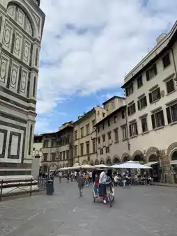 Start at the Duomo di Firenze (Cathedral of Santa Maria del Fiore). Climb Brunelleschi’s Dome early to beat the crowds — the view over the red-tiled roofs and Tuscan hills is stunning. Don’t miss the adjacent Baptistery with its golden mosaics and Giotto’s Campanile.