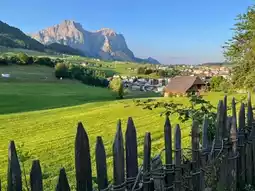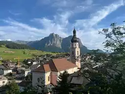 The village of Kastelruth (or Castelrotto in Italian) in South Tyrol, Italy. The village is located in the Dolomites, a UNESCO World Heritage Site, at the foot of the Schlern mountain. A prominent feature in the picture is the free-standing tower of the Parish Church of Saints Peter and Paul, which is 82 meters high. Kastelruth is known for its beautiful alpine landscape, traditional architecture, and a strong Germanic culture. It is a popular base for hiking, cycling, and skiing in the surrounding area. The village is also famous for the folk music group "Kastelruther Spatzen".