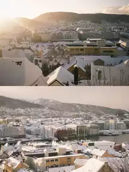 Stroll along the Bryggen Old Wharf, take the Flønberg Funicular to overlook the panoramic view of Bergen, then visit the bustling Bergen Fish Market and taste authentic seafood.