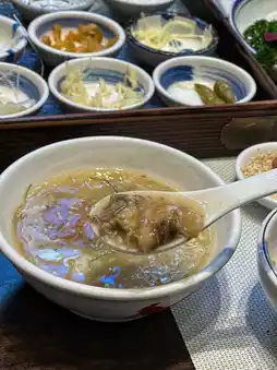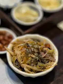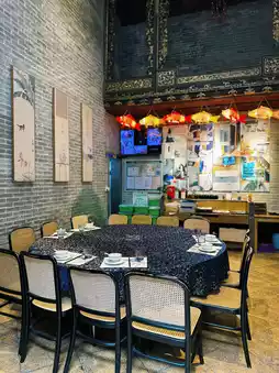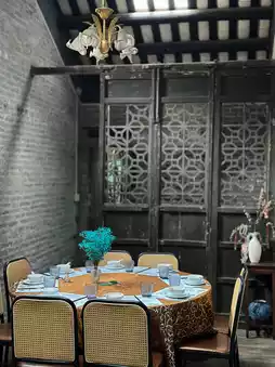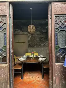 This restaurant is hidden in an alley near Qinghui Garden. From the outside, it looks like a self-built house that has been converted into a restaurant, with an antique style. It is actually an old house from the Ming Dynasty. The restaurant has two floors, with a hall, open private rooms, and a kitchen on the first floor, and private rooms on the second floor.