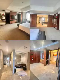The water taps in the lounge and room are rusty, making them difficult to turn on. The bathtub and shower are small.