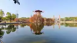 Qiandeng Lake Park is divided into the South District and the North District. The North District is relatively quiet and sparsely populated, with garden landscapes. The wooden plank paths in the lake are lined with Metasequoia glyptostroboides, and there are small fish swimming in the water, which is particularly peaceful.
