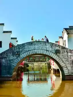 The Jiangnan water village area, small bridges and flowing water, people, wearing Hanfu and walking in, just like the people in the painting.