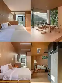 ▪️Wooden decor blends into the mountains, with a view of the lush greenery