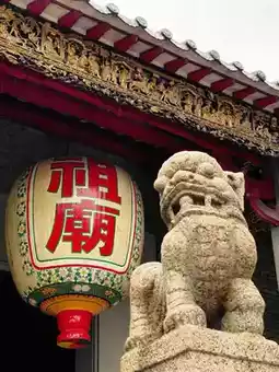 The architectural decoration of the Ancestral Temple is exquisite and is praised as the 'Palace of Oriental Folk Art.' Its wood carvings, brick carvings, stone carvings, and gray sculptures are all beautifully crafted, especially the large deity platform in the main hall, which is a famous gold lacquer wood carving masterpiece in Chancheng.
