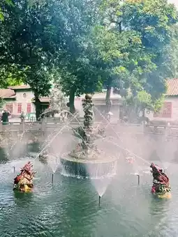 The garden's design primarily features water, bridges, pavilions, and terraces, showcasing Lingnan-style aesthetics. It also includes colorful 🌈 glass and geometric-patterned windows 🪟, with intricate and exquisite designs.