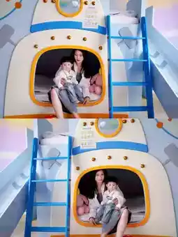 🛏This time we booked a dreamy space family room. When we stepped into the room, it was like being in the vast universe🌌. The stars on the ceiling and the planet murals on the walls were so realistic that they seemed within reach. Instantly transform into a little astronaut 👨🚀 and explore every corner excitedly. The blue and purple color combination looks more dreamy.