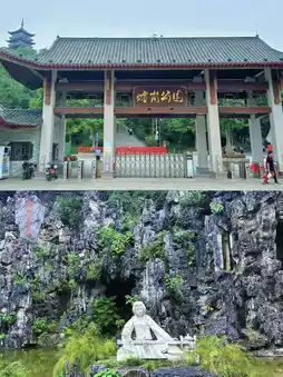 Right next to Qiandeng Lake and connected by foot.