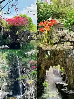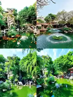 The rockery in Qinghuiyuan Garden is ingeniously designed, making you feel as if you've entered a fairyland. Surrounded by lush greenery, flowing water, and strategically placed rocks, the winding paths lead to secluded spots with cascading waterfalls. The reflections in the water and the plump yet agile koi fish swimming freely complement the centuries-old trees and traditional buildings, creating a truly classical atmosphere!