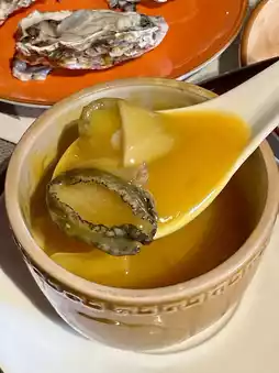 💙Individual servings of quinoa and wild rice stew with abalone. The abalone is so chewy that it bursts with juice when you bite into it.