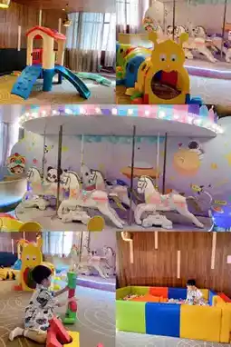 There is a children's playground on the 3rd floor of the hotel, and a gym, yoga room, and indoor heated swimming pool on the 6th floor. There is also an outdoor swimming pool, a children's water slide, and bubble battles.