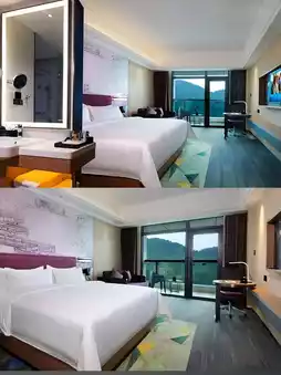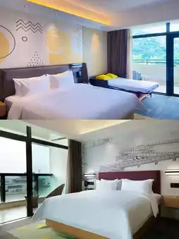 The hotel is located in Guanxin Town at the foot of the Xiqiao Mountain National 5A Scenic Area. It is a 5-minute walk to the west gate of Xiqiao Mountain and only a road away from Tingyin Lake. You can enjoy the scenery of the lake and mountains when you open the window, and you can also walk to Tingyin Lake to watch the light waterfall show at night to feel the romance of the water curtain and light. The surrounding facilities are complete. There are Southeast Asian restaurants and lake view cafes in Guanxin Town. It is a 10-minute walk to the Guangdong Eternal Love Scenic Area, which is very convenient for family trips or couples' dates.