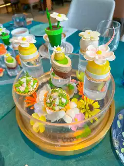 Flower Mousse: Mousse cakes in floral shapes with different flavors—not only stunning in appearance but also a delightful surprise with each bite, melting in your mouth with just the right sweetness.