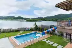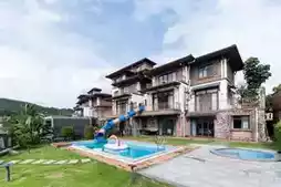 Many villas feature lakeside views. Smaller units with water parks (3-20 beds) are great for friends ✅ families ✅ or corporate retreats ✅ (some even have Instagrammable interiors!).