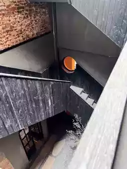 The old chimney from urban renewal that is no longer demolished, becoming rarer and rarer. The development of old and new blends with coffee culture.