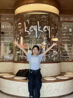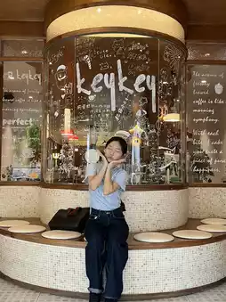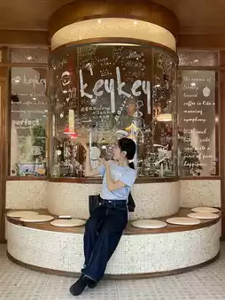 The Keykey Café in Foshan made my heart race even before stepping inside! The exterior of the shop is white, clean, and adorned with cute drawings and sentimental phrases, making it impossible not to take photos✨