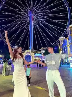 🌃 The hotel's Southeast Asian buffet had us locking in those window seats immediately! Looking up, we saw the night view of the Ferris wheel—the moment the sky darkened, the lights suddenly lit up, like a glowing, rotating necklace wrapped around the night sky, sprinkling stars with every turn. My girlfriend recorded the whole scene on her phone, murmuring, "This view is unreal—better than actually riding the Ferris wheel!" She kept glancing back between bites, completely immersed in the vibe.