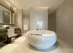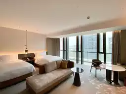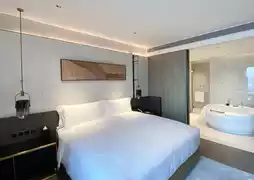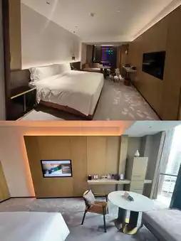 This time I chose the Executive King Room, 50 square meters, located on the 19th floor. The ceiling height makes the space look larger, and the bathroom and walk-in closet are also spacious. There is a sofa in front of the bed, and the overall layout is somewhat like the Executive Suite at Foshan Poly InterContinental Hotel.