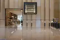 The hotel's design is centered around Lingnan style. The lobby's background wall depicts Foshan's tourist attractions and features two auspicious lions, one red and one blue, with the blue lion even moving. The corridor from the front desk to the guest room floors has a resting area with walls adorned with Foshan's famous ceramics, reminiscent of Nanfeng Ancient Kiln.