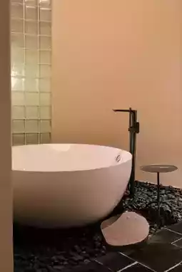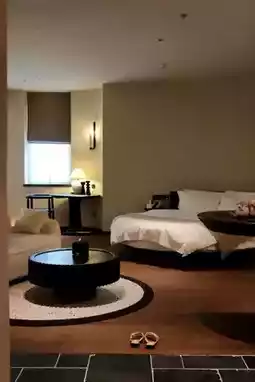 We booked the Supreme Dream Room, a full 70 square meters, with a 2.2-meter large round bed, double bathtub, double washbasin, tea room, large sofa, and work area. Super spacious.