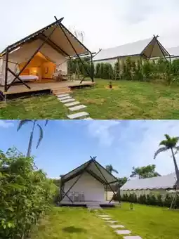 The camp location is amazing, right near Nanhai Bay Forest Ecological Park, surrounded by endless tea mountain forests and 2,000 acres of Silver Lake 🌊 Open the window, fresh air and stunning lake views greet you, full of negative oxygen ions, making you feel completely healed in body and mind. The room comes with a 300㎡ private courtyard, the lawn is soft, and the sunlight is especially comfortable.