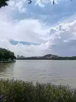 1️⃣ Qingyun Lake: From the archway, first walk along Qingyun Lake, the lake surface is very wide, and the green lawn on the right is perfect for relaxing and playing around!