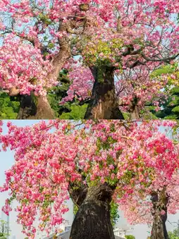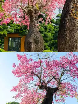 🌸【Pink Snow Atmosphere・Maitreya Tree】From November to December, the kapok trees bloom in full pink cascades, hiding the "beer belly" tree—the Maitreya Tree! Its round, chubby trunk is super cute. Originally from Yunnan, it has taken root in Guangdong. Sitting under the tree feels like gazing up at a pink sky, filling your winter with romance~