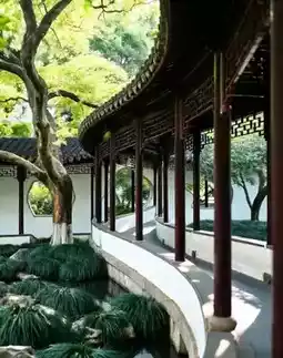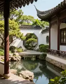 Use corridors, flower windows, and pond water as foregrounds to create the effect of “walking in a painting.”