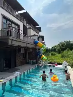 Just checked out! Weekend getaway with the kids, no hesitation! Found an amazing family villa in Foshan. It not only has a pool slide that kids love ๐ฆ, but you can also enjoy ๐ข BBQ, ๐ play mahjong, and ๐ค sing inside the villa. Both adults and kids have so much fun they donโt want to leave!!