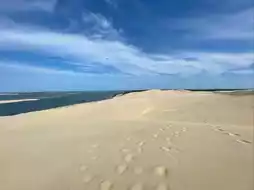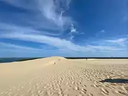The atmosphere is peaceful yet full of energy, with the wind shaping the sand into ever-changing patterns. Visitors often bring a picnic or simply sit to watch the sunset paint the sky in shades of gold and pink. Whether for adventure, photography, or quiet reflection, Dune de Pilat offers a unique and unforgettable experience surrounded by the raw beauty of nature.