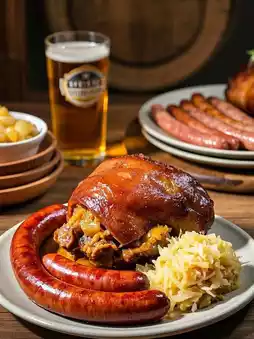I highly recommend Zum Gemalten Haus, which is near Römerberg. Their signature apple wine pork knuckle is a must-try! The pork knuckle is roasted to crispy perfection on the outside and tender on the inside. The meat is bursting with flavor, and the unique apple wine sauce adds a sweet and sour touch that cuts through the richness. The classic German sausage platter is also excellent, featuring a variety of sausages served with sauerkraut for an authentic German experience.