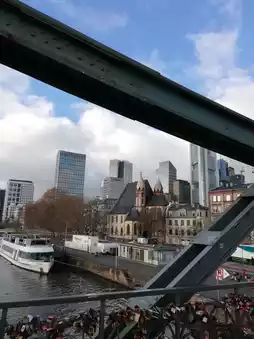 Iconic pedestrian bridge with love locks and great photo spots over the Main River.