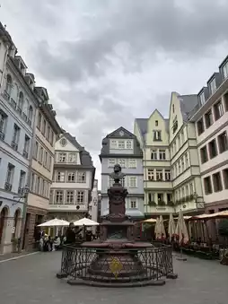 In front of the Stolze Fountain (between Römer Square and Frankfurt Cathedral)