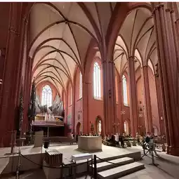 Frankfurt Cathedral, officially known as St. Bartholomew's Imperial Cathedral, is more than just a grand church; it is a historic site where the emperors of the Holy Roman Empire were elected and crowned. Due to its historical significance, it is often referred to as the 'Kaiserdom' (Emperor's Cathedral). Towering next to Römer Square, its red sandstone Gothic architecture dominates the old town's skyline, serving as a timeless work of art.
