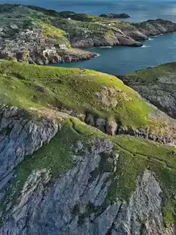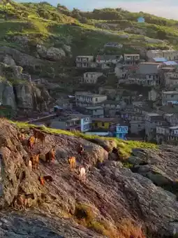 Weathered stone walls+fishing nets+rusted anchors, best on cloudy days