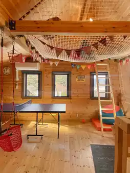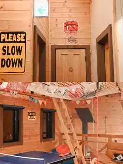 The playroom on the second floor has a ping pong table, hammocks, table soccer games, net play equipment, and more, so it's recommended for families with children.