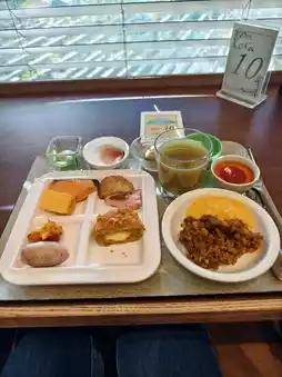 Breakfast is buffet style with many choices, including Japanese appetizers, miso soup, Japanese hot food, omelette, yoghurt, bread🥖, dessert🍮, etc. And dinner is an 8-course Western dinner. The taste is normal.