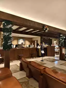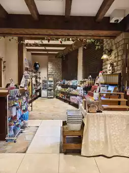 There is a small shop on the first floor, selling souvenirs and gift boxes. The Bar area overlooks Mount Fuji and provides hot drinks 24 hours a day, including coffee, tea and chocolate. Japanese-made red wine is available for sale in the evening. The restaurant is also on the first floor, where breakfast and dinner are served.