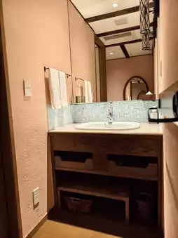 There is a large bath and several private baths on the second floor. Popsicles are placed outside the large bath at night and lactic acid drinks are placed in the morning for guests to enjoy. Toiletries and bathrobes are also available on the same floor for guests to pick up.