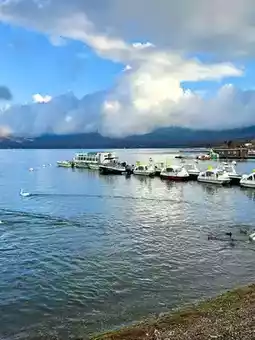 ✨ Lake Kawaguchi: The lake is emerald green, reflecting the magnificent view of Mount Fuji.