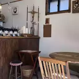 The cafe located in front of the shrine is small but cozy