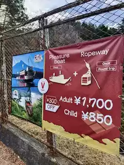 To get to Kawaguchiko Tenjoyama Park, you have to take the Kawaguchiko Cable Car from the foot of the mountain. The round trip cable car 🚡 costs 1000 yen. If you plan to take the Tensei boat to tour Lake Kawaguchi, you can purchase a package ticket for 1,700 yen.