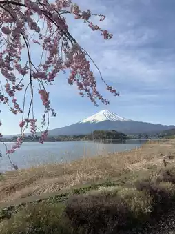 #Oishi Hana Terrace #Lake Kawaguchi #Mt. Fuji #Weeping cherry blossoms #Morning activity #Early morning spectacular view #Yamanashi trip #JapanSpring #MtFujiView #Trip memory