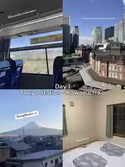🌞 Day 1: We traveled on flight XJ602: DMK TO NRT (round trip about 13K including 20 kg of luggage) - Take a bus from the airport to Tokyo Station (1500 yen) - Take a bus from Tokyo Station to Kawaguchiko Station (2000+ yen) - Pick up the car at Toyota - Check in at Fujiyamabase accommodation (cute accommodation and the owner is lovely and very kind) 🌞 Day 2 - Drive from the accommodation to visit Lake Kawaguchiko, Lake Saiko, Saiko Iyashi-no-Sato Nenba (P.S. Actually, according to the plan, there are more places than this, but all of them are beautiful. My friends and I spent a long time taking photos 55555 If anyone goes, you can add more places to go.)🌞 Day 3 - Drive from the accommodation to visit Chureito Pagoda, Oshino Hakkai, Lake Yamanaka - Take a bus from Kawaguchiko Station to Ikebukuro Station (2000+ yen) - Check in at House Ikebukuro (very good accommodation) Inexpensive too)🌞 Day 4- From Ikebukuro Station, take the Yamanote Line to Hamamatsucho Station to take pictures with Tokyo Tower.- Take the bus to Shibuya.- Enjoy the view at Shibuya Sky, Shibuya Scramble Crossing.- Walk around Cat Street.- Walk around Shinjuku.- From Shinjuku Station, take the Saikyo Line to Ikebukuro Station.🌞 Day 5- From Ikebukuro Station, take the Yarakucho Line to Shintomicho Station.- Walk around Tsukiji Fish Market and Ginza area.- From Ginza Station, take the Ginza Line to Asakusa Station.- Worship and shop at Sensoji Temple.- From Asakusa Station, take the Ginza Line to Ueno Station.- Walk around Ameyoko Market and shop for souvenirs.- From Okachimachi Station, take the Yamanote Line to Ikebukuro Station.🌞 Day 6- From Ikebukuro Station, take the Shonan-Shinjuku Line to Kamakura-Kamkura 1 One-day trip - Return by the same train line 🌞 Day 7 - Full day at DisneySea (We took a direct bus from Ikebukuro Station, 1,000 yen per person) 🌞 Day 8 - Take a bus from Ikebukuro to Narita Airport (approximately 2,000 yen) ✈️ : This trip was from April 15-23, 2025 💰 Expenses: - Airfare 13,000 baht - Approximate cost of meals: 500 baht per meal, totaling approximately 10,000 baht - Accommodation at both hotels: 7,000 baht per person - Transportation + car rental + entrance fees: 10,000 baht - Shopping costs vary depending on the individual.