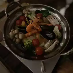 As the evening cools down and the sky turns stunning, we prepared our own BBQ. Wagyu beef, sausages, vegetable platters, and sauces—all ready to go. Once the grill is fired up, the aroma fills the entire camping area 🏕️
