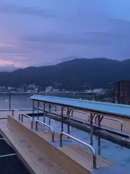 On the rooftop, there is also a foot bath with a beautiful view of the mountains and the lake — highly recommended.