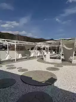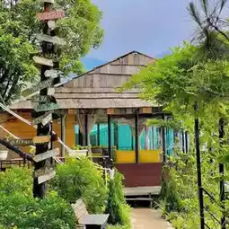 Auntie Aom complained... Fuji Omuro Sengen Shrine, an ancient shrine on Mt. Fuji, on the morning of the 2nd. Last night, we stayed at the Toyoko Inn for one night. We took the wrong bus the other day, taking the green line instead. So, we were able to explore the tourist spots, so today we stopped by. It was drizzling this morning, but luckily it wasn't heavy, so we went in to pay our respects and explore the place. It's a peaceful, ancient shrine with a few worshippers. There are cherry trees, large trees, and a bamboo grove. The atmosphere is quiet, with the sound of birds chirping. The sky after the rain is bright and a beautiful blue. Walking to the back is Lake Kawaguchi, with a few cherry trees in bloom.