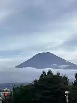 At the park near the New Sengen Shrine, catching a clear view of Mount Fuji depends on your luck and the weather.