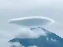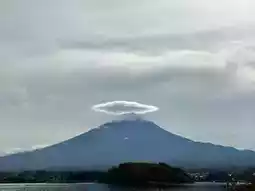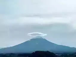However, the highlight of this trip was undoubtedly the unique cloud formation atop Mount Fuji. From the moment we arrived at Oishi Park, we noticed a peculiar cloud hovering above the mountain peak. It resembled a hat or perhaps a flying saucer. This "saucer cloud" clung tightly to the summit, and despite the thickening clouds over time, it remained distinctly visible. Occasionally, it was partially obscured by surrounding mist, only to reappear in full clarity moments later.