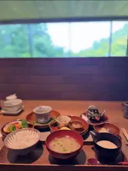 Breakfast was a luxurious Japanese set meal. 😍🍱 The rice, soup, and grated yam were all refills, and they were so delicious I ended up eating two bowls. 🍚